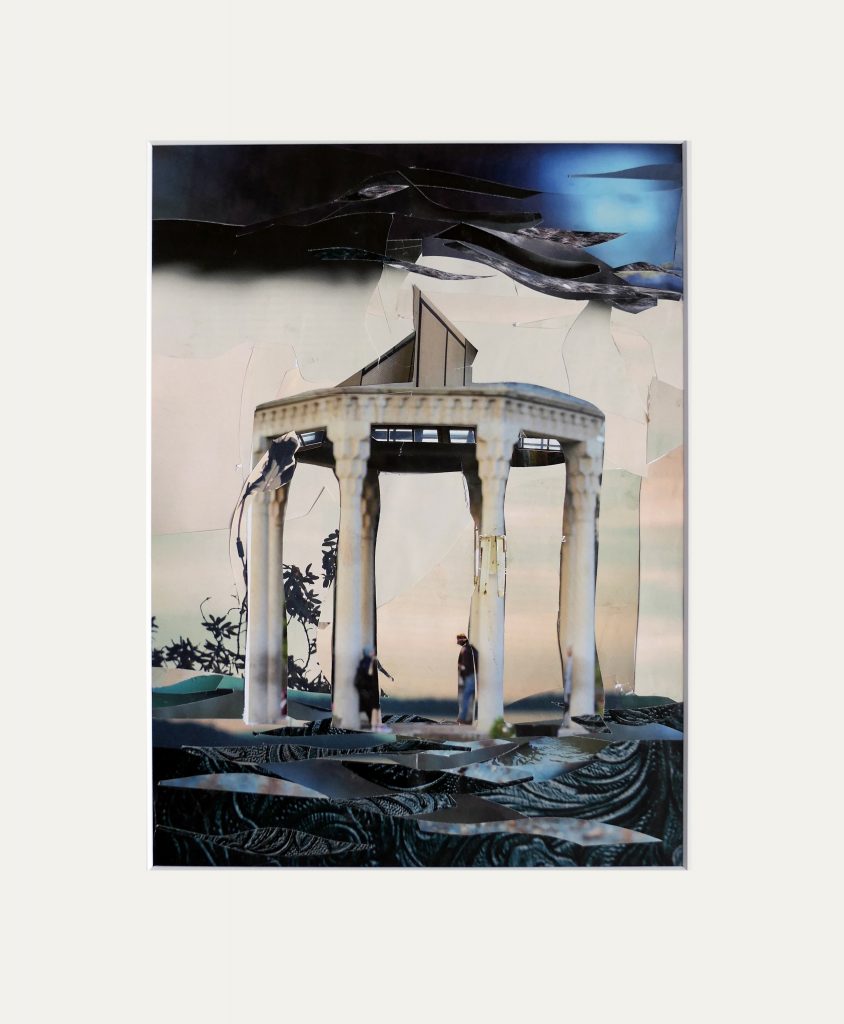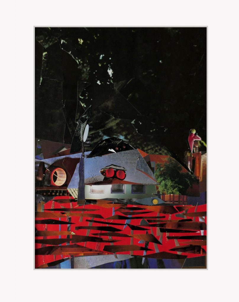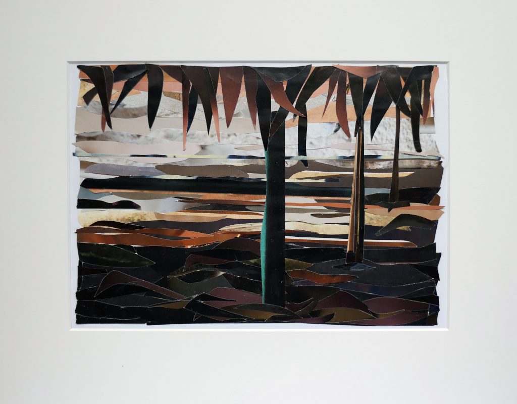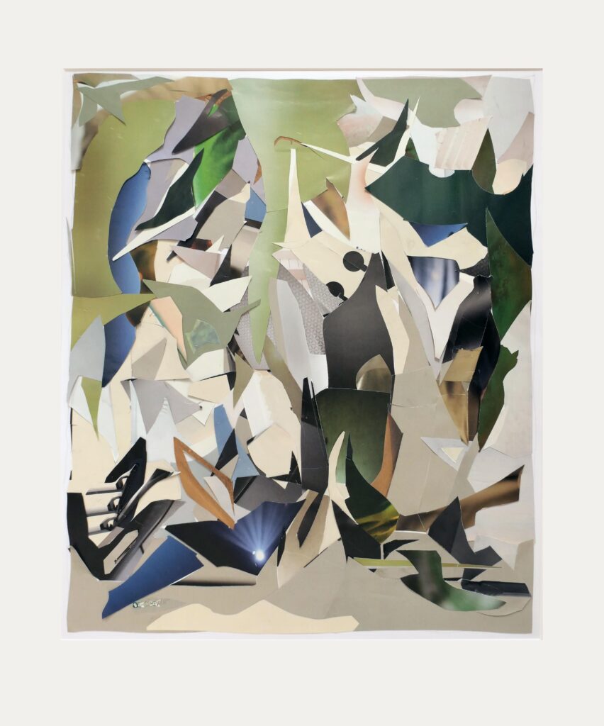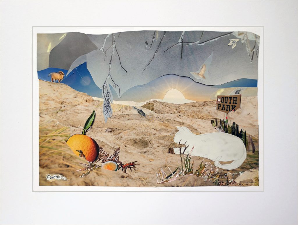 ‘De horizon van morgen’ is gemaakt als collage van gesneden bedrukt karton op een eigen foto. Bij mijn recent werk zijn ook enkele collages over de huidige situatie te zien (WAR en Strategic)