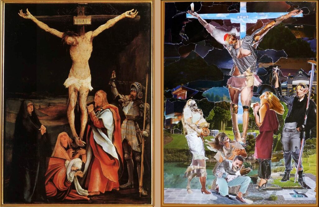 Dit werk is geïnspireerd op een van de middeleeuws meesterwerken van Matthias Grünewalt, niet zijn allerbekendste, dat van het Isenheim altaar maar een even krachtig en boeiend stuk.
